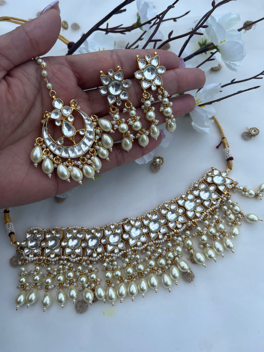 Gold Plated pachi kundan set (necklace with earrings with tikka)